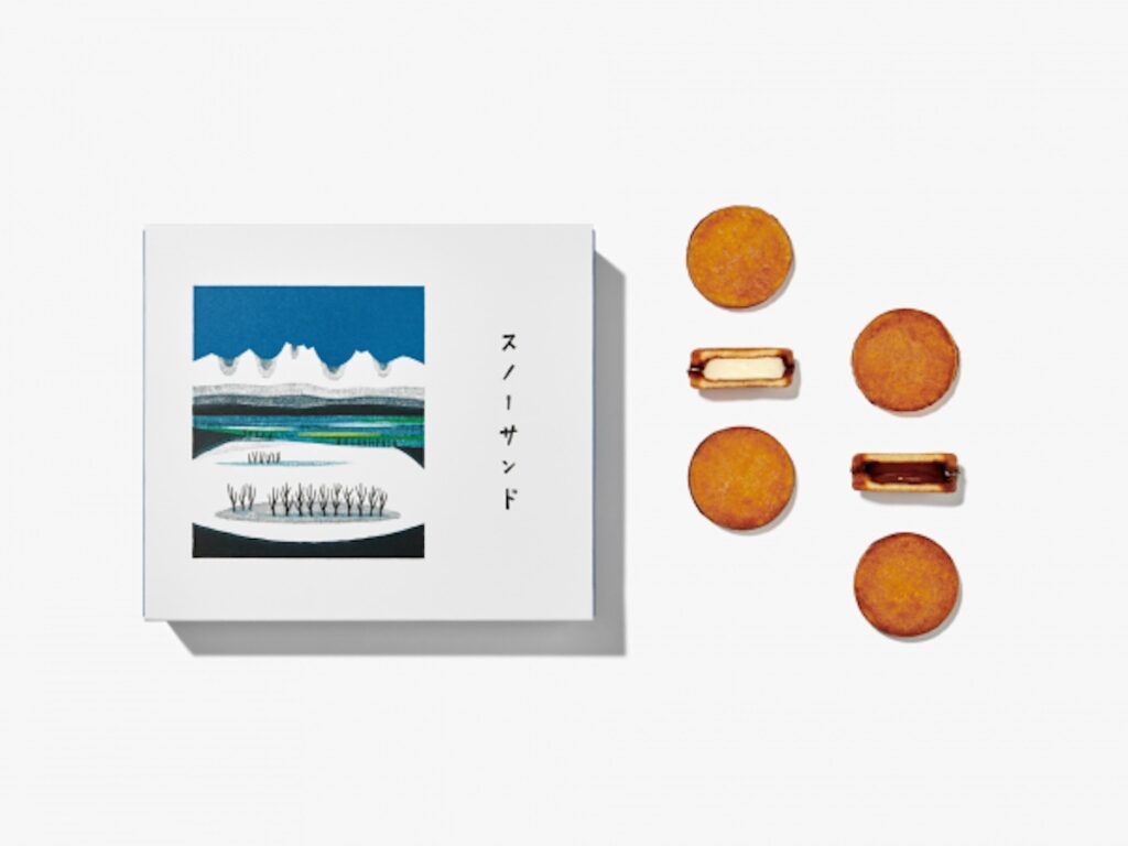 代表作の「スノーサンド」は、直火焼きのラングドシャで生チョコレートを挟んだ新食感のクッキー。